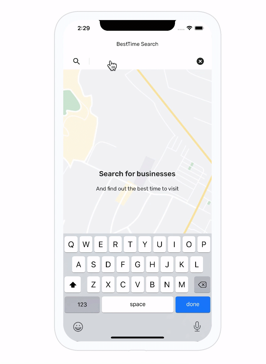 Location biasing is used to define the radius parameter that will determine the results based on the location. Once enabled, users will be asked for location permissions when opening the BestTime Search screen. Their location will then be used to make Google Places Autocomplete API use its location biasing and prefer businesses within the given radius of the device location, while still showing relevant results outside of it.