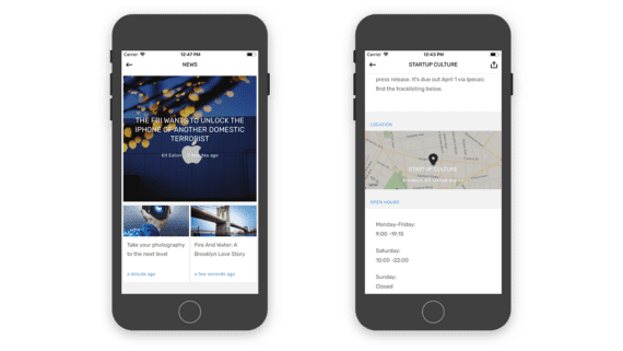 Section headers are found on details screens with multiple text blocks, such as the About screen, with it’s Location and Open Hours sections.