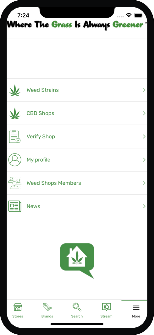 Stream is a web-view app screen that updates when the web one updates. It a place for comments and reviews on different brands and weed shops. Here you can place an image, 1 to 5 stars and a comment on a specific brand / shop. Also, you can comment on others images.